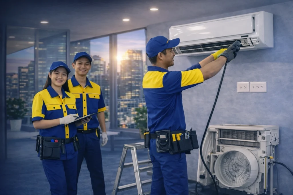 เราไม่ได้แค่ช่างแอร์ทั่วไป เราออกแบบ ดูแลและรักษาแอร์ ระบบปรับอากาศให้ทำงานได้จริง เต็มประสิทธิภาพเพื่อลมหายใจที่สะอาดและลดต้นทุนของคุณด้วยมาตรฐานวิศวกรรม